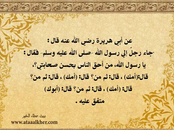 فــــوائـــــد وأحــــاديـــــث On Twitter قال رجل يارسول الله من أحق الناس بحسن صحابتي قالﷺأمك قال ثم من قالﷺثم أمك قال ثم من قالﷺثم أمك قال ثم من قالﷺثم أبوك Http T Co Doqjjnu2pp