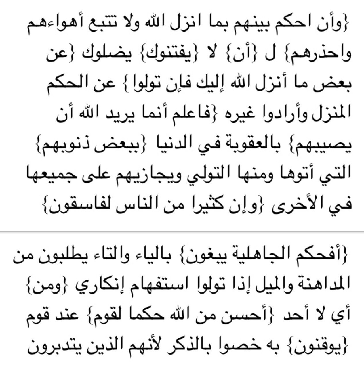فالح الشبلي Falih Alshibly On Twitter وأن احكم بينهم بما أنزل الله ولا تتبع أهواءهم واحذرهم أن يفتنوك عن بعض ما أنزل الله إليك فإن تولوا فاعلم أنما يريد الله أن