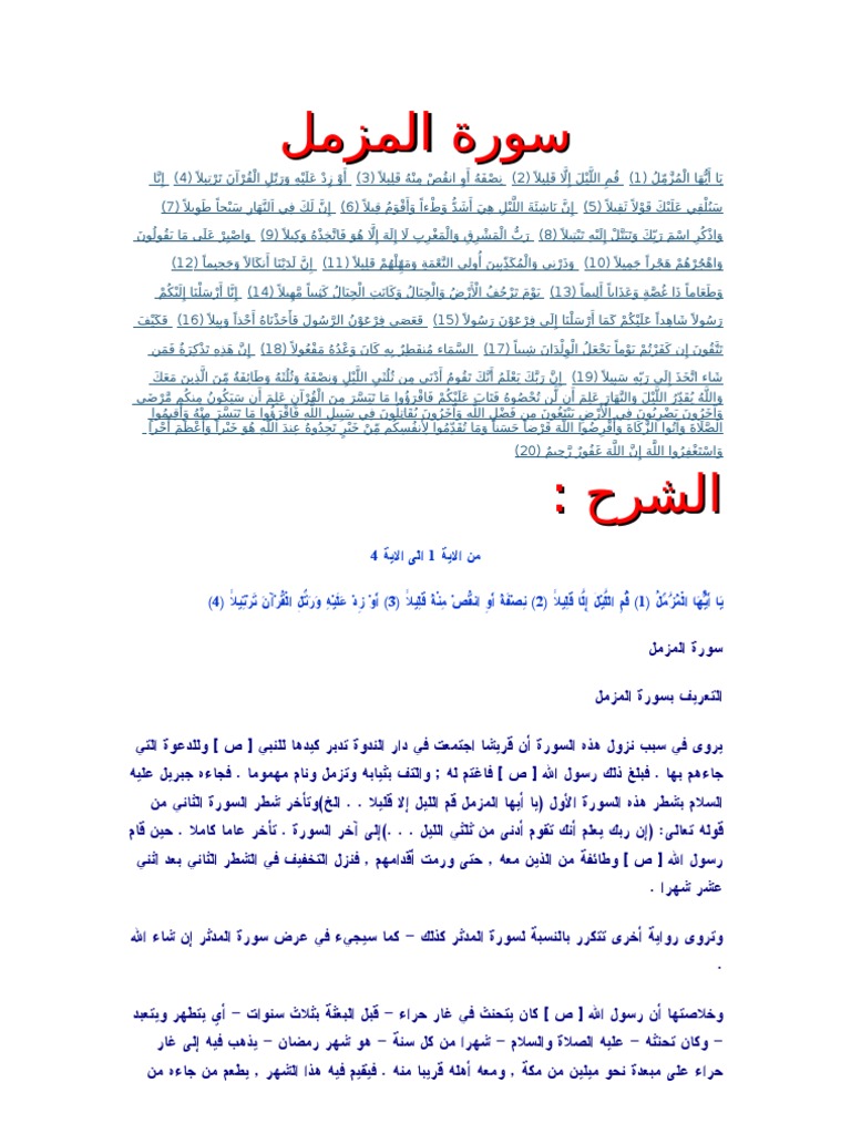 شرح وتفسير سورة المزمل Surah Al Muzzammil معاني الأسماء ومعاني الكلمات وتفسير القرآن الكريم