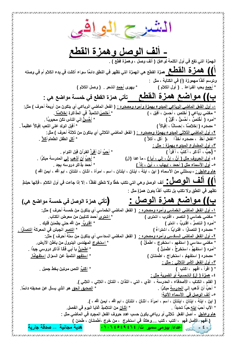 اوراق مراجعة همزة الوصل وهمزة القطع الصف الرابع لغة عربية الفصل الثاني 2017 2018 المناهج الإماراتية