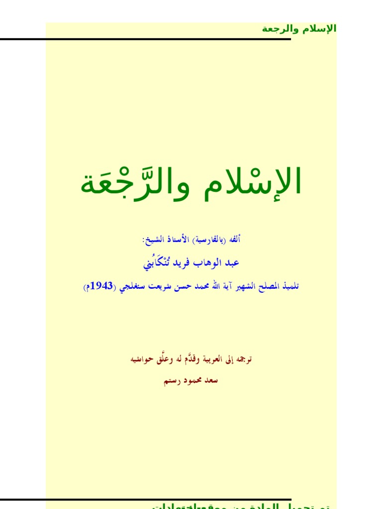 الإسلام والرجعة عبد الوهاب فريد التنكابني